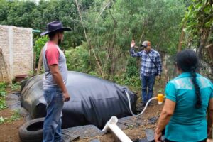 Quienes conformamos la BIO RED somos un grupo de familias de usuarias y usuarios de biodigestores, organizados y en un constante aprendizaje que nos conduzca a una defensa integral de nuestros recursos, nuestras tierras y nuestros territorios. Con la novedosa ecotecnología del biodigestor, que se alimenta de los residuos que se generan en nuestras pequeñas granjas, producimos nuestro propio biogás para cocinar a la vez que obtenemos biofertilizante para nutrir nuestros cultivos. Asimismo, estamos instalando geotanques de captación pluvial de 7,800L para almacenar agua de lluvia que aprovechamos en nuestros hogares y para regar nuestras huertas.