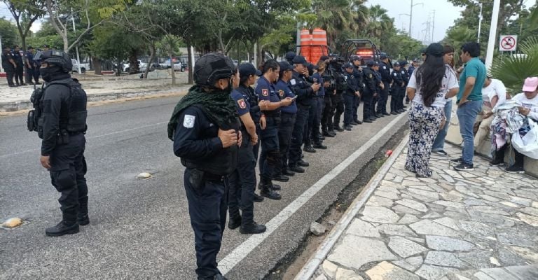 Alrededor de las 15:00 hrs., efectivos femeninos y masculinos de la policia municipal se presentaron
