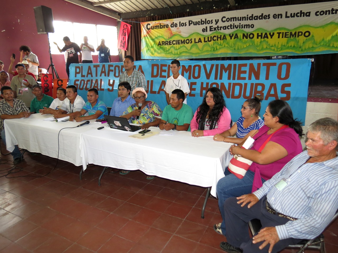 «Estos proyectos -se lee en la Proclama de la Cumbre- son desarrollados a costa de la violación de los derechos humanos, la violación del Convenio 169 de la OIT, la estigmatización y criminalización  a las organizaciones, la división de las comunidades, la judicialización de defensores y defensoras y el asesinato de compañeros y compañeras que han echo frente a este modelo de despojo que, a expensas de extraer nuestros bienes comunes para cubrir la demanda del gran capital, se empobrece a las comunidades», denuncia el movimiento social y popular hondureño en su Proclama.